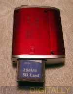 There is no included software. This is not really a glaring omission, as Microsoft’s Window Media Player 10 is more than adequate. This is a free download for Windows users, and has a sync feature to put your tracks on the LDP-200. Windows Media Player can also rip songs into tracks of both the MP3, and WMA varieties. The LDP-200 can play both types of tracks, but in keeping with the no frills theme, doesn’t support any other file formats. If you don’t like Windows Media Player, tracks can be simply dragged and dropped onto the Lexar device, and it will play them. There is no software needed as the player is just a “mass storage device” to Windows like your USB flash drive. It just happens to play its contents. In fact, like other players, it can function as an SD card USB 2.0 reader (sell that one to your boss when requesting this item on the expense account). The USB connection on the player is covered with a tethered port cover so it doesn’t get lost.