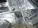 We walked out with 1750 square-feet of aluminum foil. One roll of 1-foot wide, and another of 18-inch wide foil. Some for the big items and some for the smaller ones.