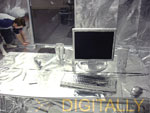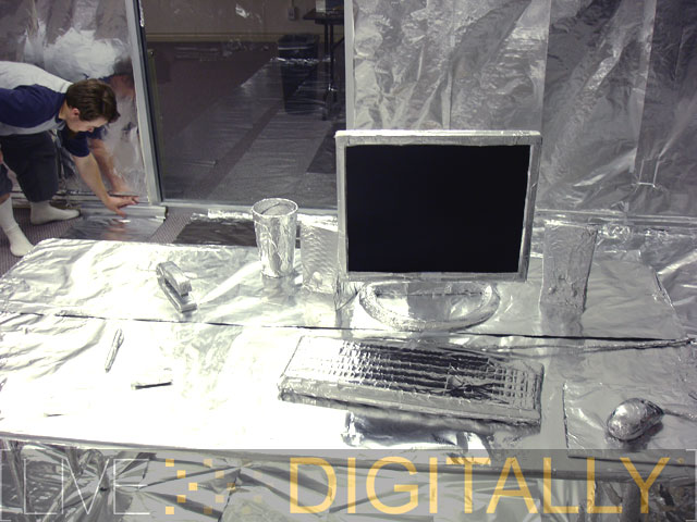 Van, one of the developers, found a site showing pictures of a cubicle coated in aluminum foil. Those guys covered a 5’x5′ cubicle; we were dealing with a 15’x12′ office. Their time: 3 days. We had to do ours in a single evening. Mission: Impossible, you say? We decided to give it a shot.