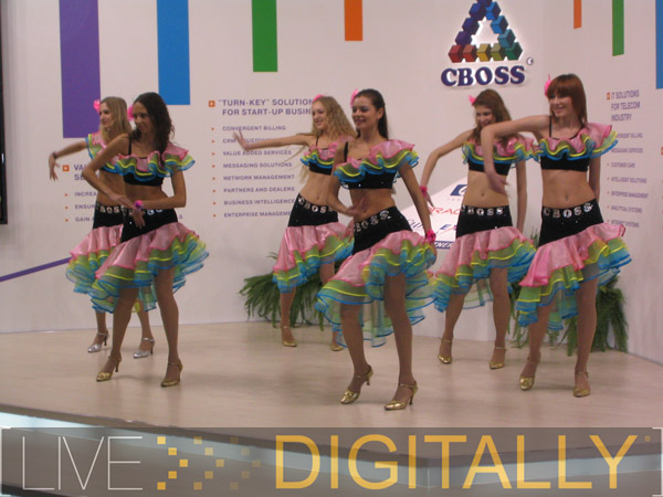 3GSM also featured your typical share of booth babes, but the ones that drew the mostCboss Booth Babes attention were at a company called Cboss.  Every 60 minutes a quick explanation of the company was given (no idea what they do still) then these 6 hypo-anorexic girls did a little dance.