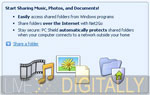 Net2Go Manager is something a bit bigger than I expected. It is the ability to share files over the internet. The simple setup requires you to create a URL in the format of http://_____.net2go.com. Once you have created your unique URL and a password, you need to enable web sharing for your chosen shared folders. Three minutes to set up the whole thing and I was sharing folders over the net. I had a friend who lives in Southern California (I’m in San Francisco) go to my net2go.com address and share some files! I see this coming in rather nicely when I want to share photos, music, video files, or accessing my important data remotely. Password protection is an option for sensitive information.