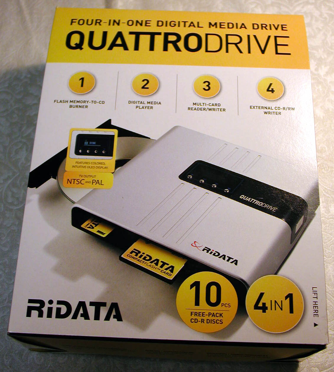 I have a confession to make: I don’t like multifunction devices. When shopping, I buy the best of the individual devices. For example, I own a separate printer and scanner, not a multifunction printer/scanner/copier. Therefore, it was with some trepidation that I approached Ritek’s latest creation, known as the QuattroDrive.