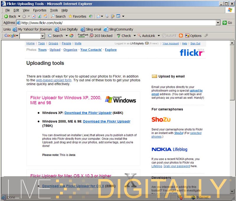 The next step was uploading the next 50 or so photos I had left, so I downloaded the Flickr Uploader tool. The download took less than a minute (yes, I was really timing every single step of the process.
